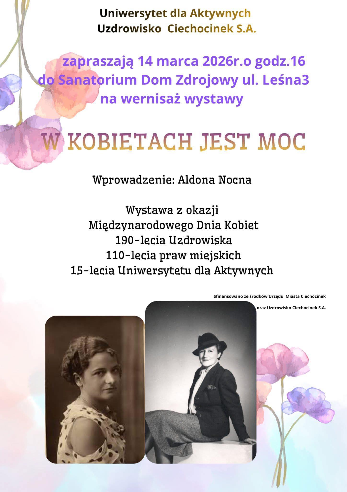 Uniwersytet dla Aktywnych oraz Uzdrowisko Ciechocinek S.A. zapraszają na wernisaż wystawy portretów kobiet związanych z Ciechocinkiem. To wydarzenie odbędzie się 14 marca 2026 r. (sobota) o godz. 16:00 w Domu Zdrojowym przy ul. Leśnej 3.Wystawa została przygotowana z okazji kilku ważnych jubileuszy i wydarzeń: Międzynarodowego Dnia Kobiet 190-lecia uzdrowiska 110-lecia praw miejskich Ciechocinka 15-lecia Uniwersytetu dla Aktywnych Portrety […]
